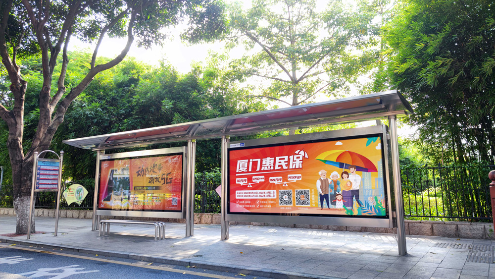 目前“惠民保”在全廈門市島內(nèi)外各個(gè)主干道及主干道交叉口、黃金的人流車流途徑處、居民生活住宅區(qū)等路段投放多個(gè)城市路名牌、公交車候車亭。