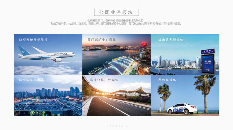 如今的天藝傳媒已經(jīng)成為廈門廣告媒體行業(yè)的龍頭企業(yè),秉著合作共贏,品效合一的理念,依托本土經(jīng)濟(jì)發(fā)展的優(yōu)勢以及深厚的客戶合作資源平臺,逐步構(gòu)建起豐富強(qiáng)勢的“海、陸、空360°”全媒體生態(tài)圈。同時,業(yè)務(wù)范圍覆蓋品牌管理、創(chuàng)意策劃、整合營銷、媒體投放等傳播鏈條。在占據(jù)戶外全媒體資源優(yōu)勢的同時,積極打造品牌運(yùn)營、整合營銷一體化的團(tuán)隊,為客戶提供“一站式”的全案服務(wù)體系,全面升級產(chǎn)業(yè)鏈,構(gòu)建多元化全媒體矩陣,達(dá)到最大回報的媒體投放組合效果。2015年10月天藝傳媒成功登陸新三板,成為福建省戶外傳媒類先行上市企業(yè)。目前天藝傳媒股份有限公司旗下?lián)碛?a href="http://m.mlrdyg.com/business/youlun/">廈門國際郵輪中心媒體、招銀疏港高速公路媒體、廈門市島內(nèi)外的路名牌、站名牌和公交候車亭、廈門機(jī)場(手推車媒體)、廈門航空(客艙媒體)、廈門地鐵媒體等面向全廈門市、輻射全福建省乃至全國的高端媒介資源。