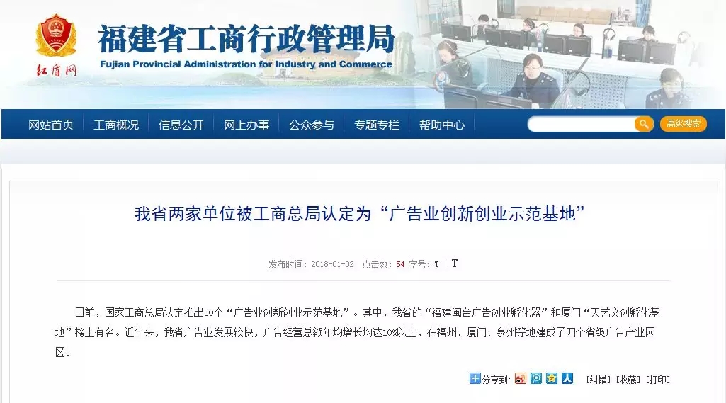 天藝傳媒獲評國家級廣告業(yè)創(chuàng)新創(chuàng)業(yè)示范基地!廈門唯一一家!